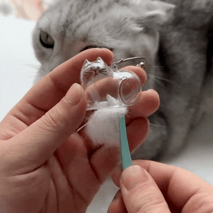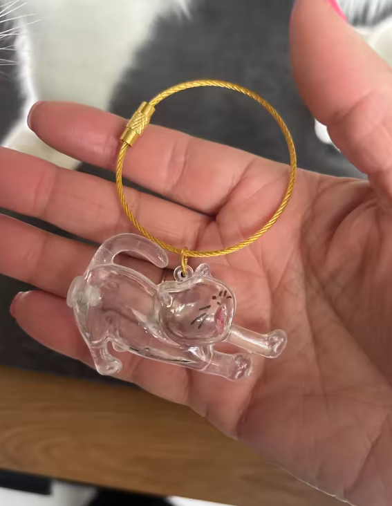 Sabes que esos pelitos que aparecen por toda la casa no son molestos… son parte de él. Con este mini gatito puedes guardarlos y convertir algo cotidiano en un recuerdo que perdura. No es solo un llavero, es llevar un pedacito suyo contigo.